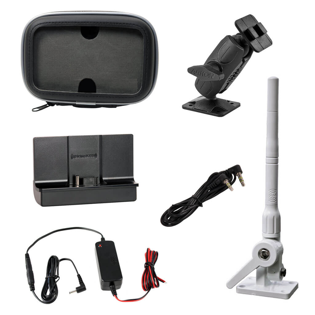If you own a boat you know having tunes on the water is a must. Our satellite radio marine installation kits allow you to take a SiriusXM® Dock and Play radio on the water. Included in the kit is a weatherproof protective case to keep the SiriusXM® receiver dry along with our high-gain satellite radio marine antenna, multi-angle mount, hardwired power adapter and audio cable. Have a Bluetooth® sound system? No problem. Just add the Bluetooth SiriusXM® dock to the kit.